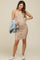 A floral print ribbed maternity dress featuring ruched sides and a square neckline. Double lined.