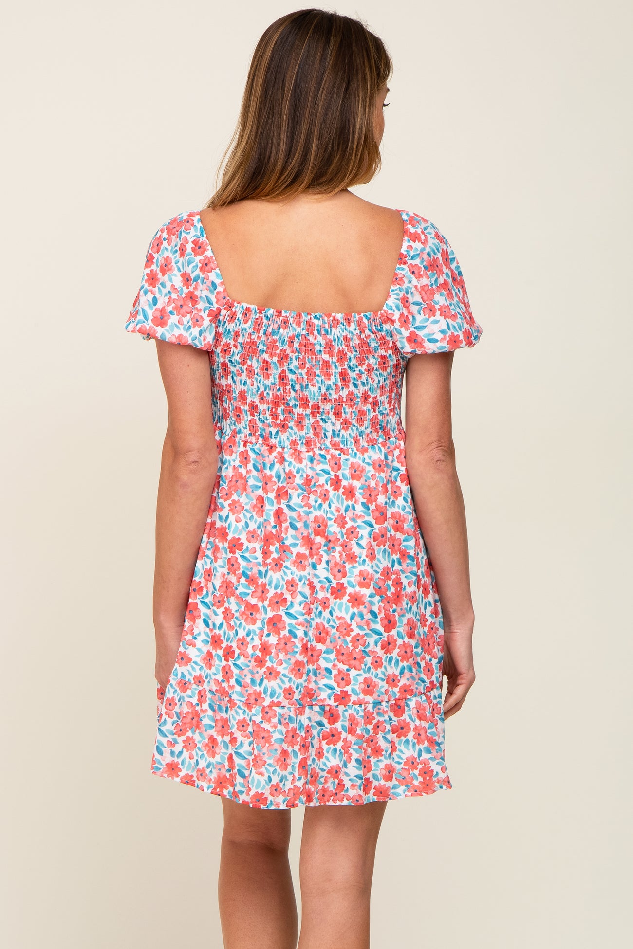Details A floral print dress featuring a sweetheart neckline, short puff sleeves, a smocked elastic back, a ruffle hem and double lining. Content + Care