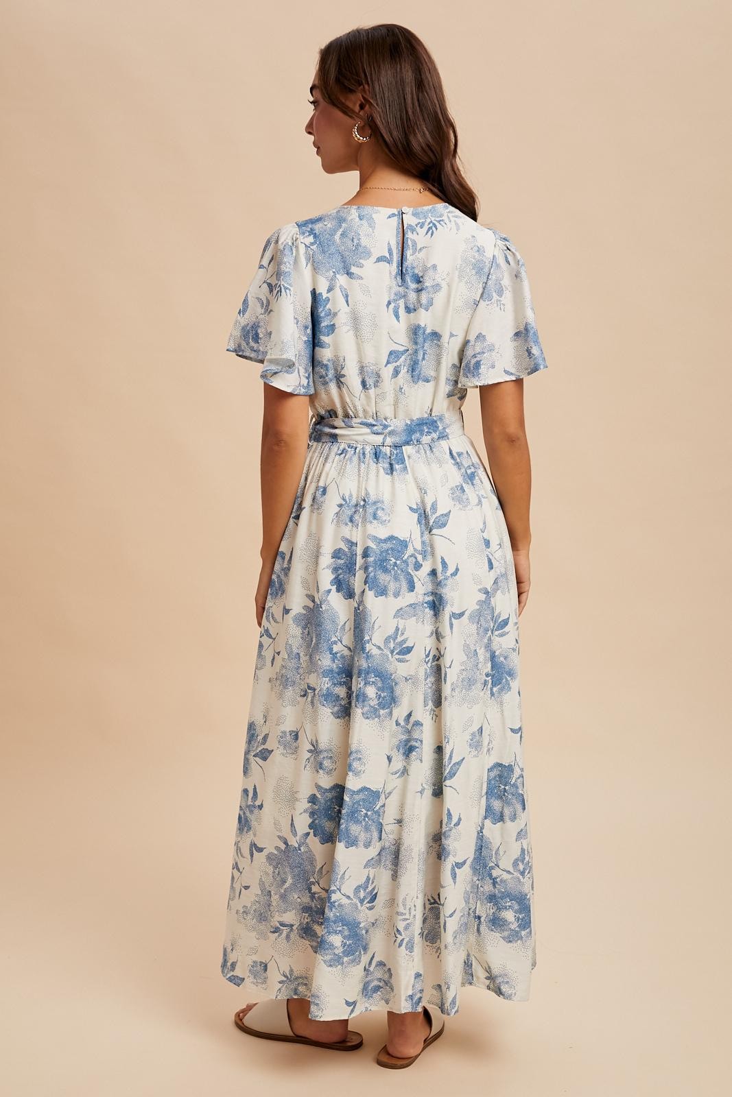 Ivory Multi Floral Flutter Sleeve Maxi Dress