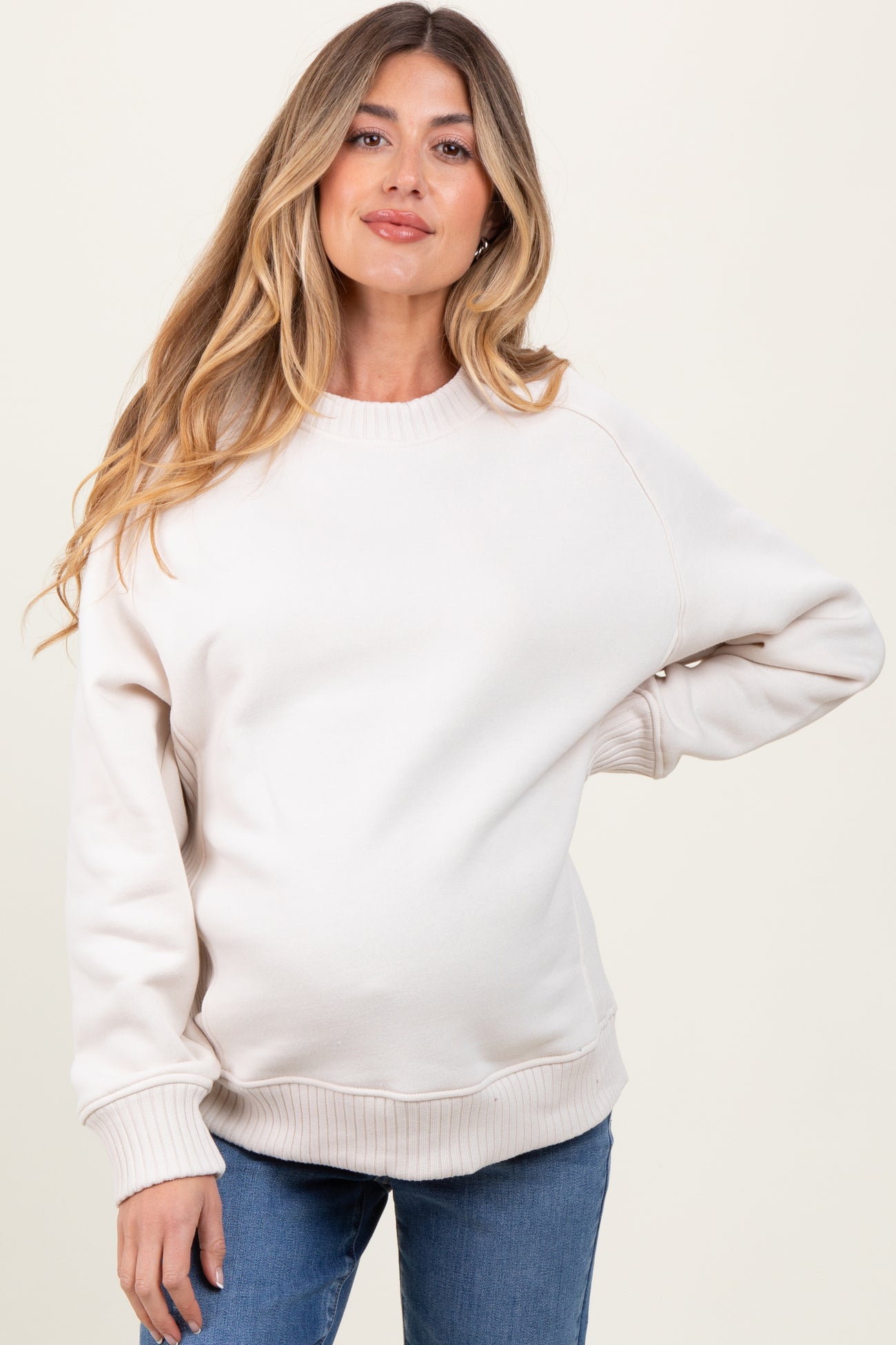 Stay cozy and stylish throughout your pregnancy with our Ivory Pullover Maternity Terry Crewneck. Crafted from soft, breathable terry fabric, this crewneck offers ultimate comfort and warmth. The relaxed fit with ribbed cuffs and hem gently accommodates your growing belly while providing a flattering silhouette. Perfect for casual days or layering, its classic ivory color pairs effortlessly with any outfit. Easy to care for and designed with moms-to-be in mind, this pullover is a must-have staple for maternity wear. Embrace comfort without sacrificing style!