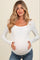 Ivory Ribbed Square Neck Long Sleeve Maternity Top