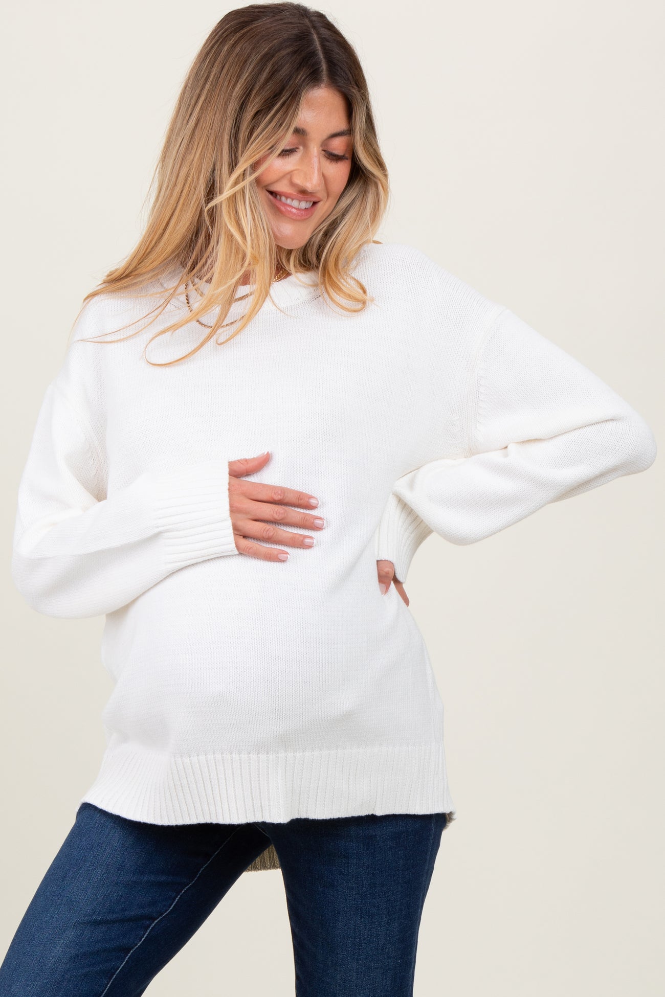 Ivory Soft Knit Basic Maternity Sweater