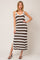 A striped crochet dress with a scalloped coop neckline and a scalloped side slit.