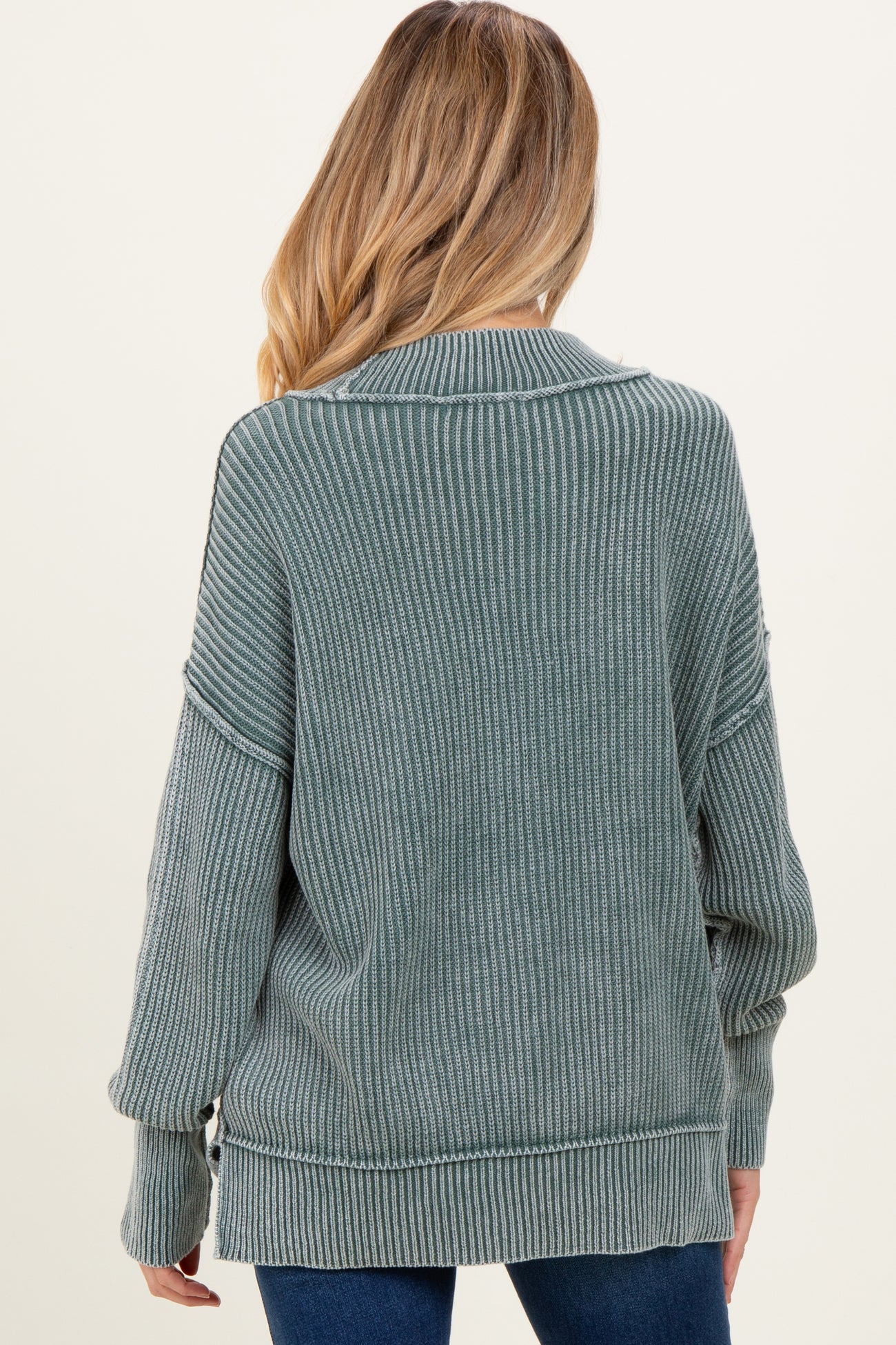 Stay cozy and stylish with our Jade Washed Side Slit Oversized Maternity Sweater. Crafted from a soft, breathable knit, this sweater features a relaxed fit that comfortably accommodates your growing bump. The trendy washed jade color adds a fresh, effortless vibe, while side slits offer ease of movement and a flattering silhouette. Perfect for layering, its ribbed texture and dropped shoulders deliver a chic, casual look for any season. Pair it with your favorite maternity jeans or leggings for a laid-back yet fashionable outfit that keeps you comfortable throughout your pregnancy.