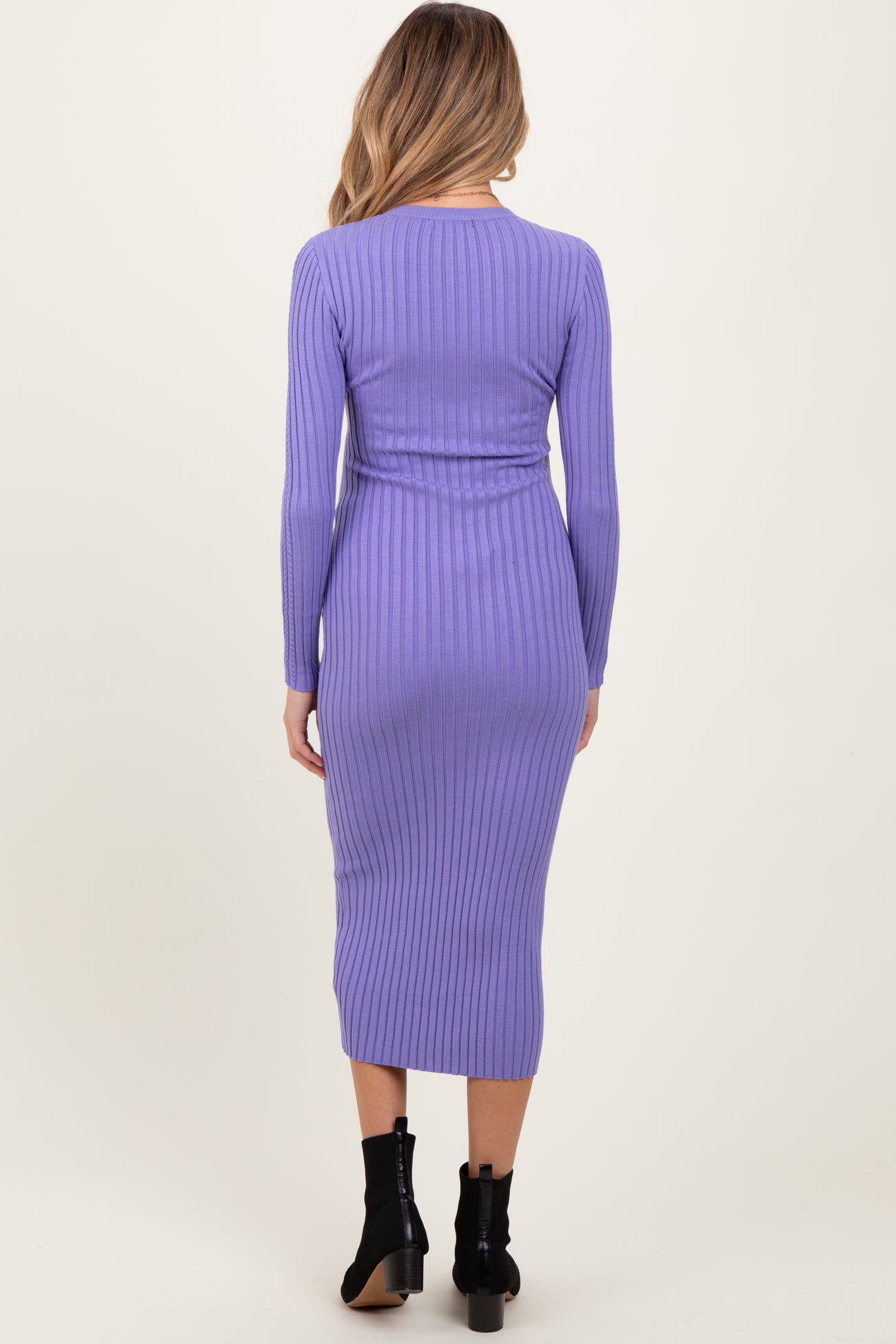 Lavender Contrast Ribbed Knit Maternity Midi Dress