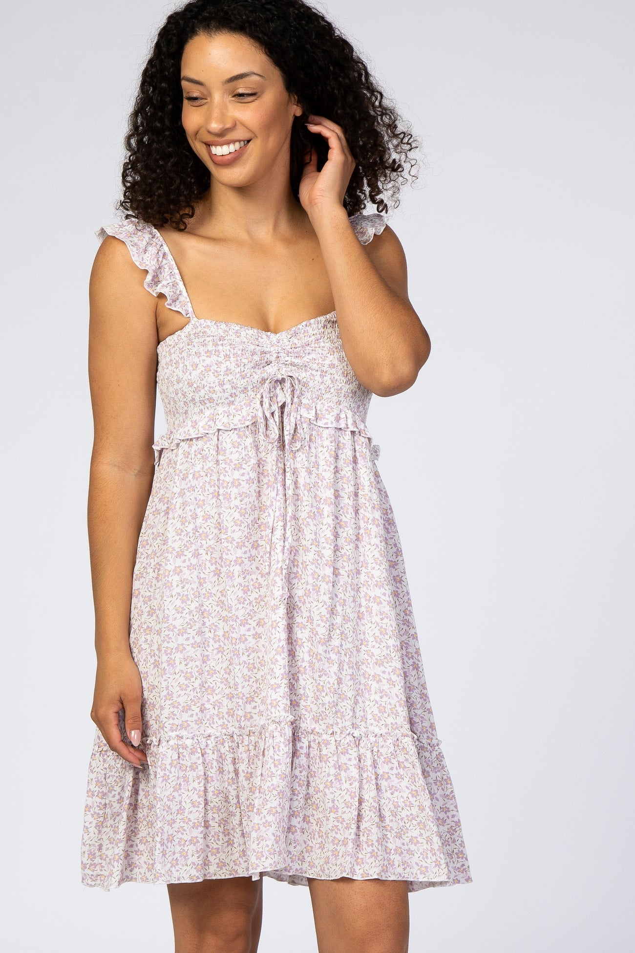 Lavender Floral Ruffle Sleeveless Mini Dress