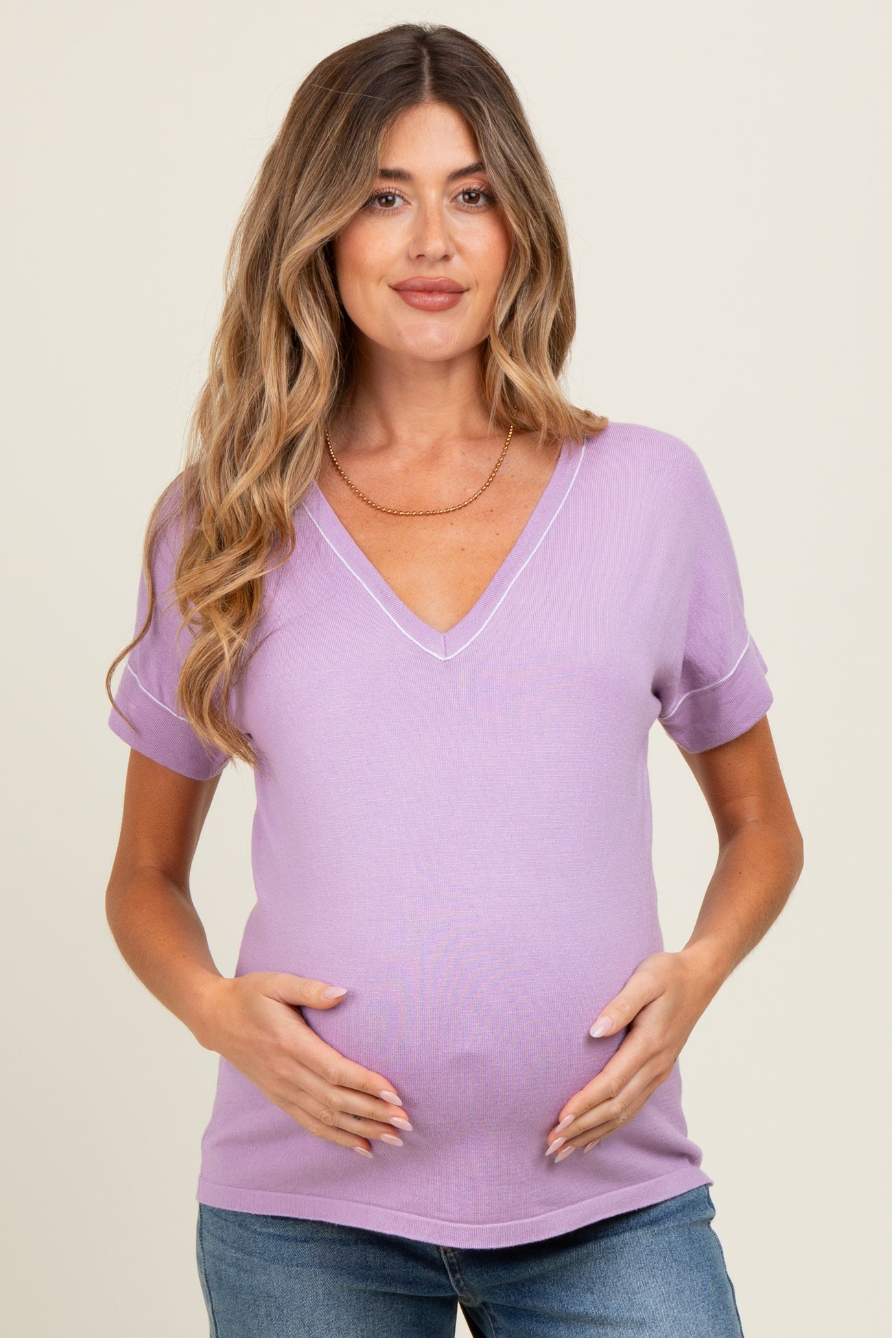 Lavender Knit Stitch Accent Maternity Short Sleeve Top