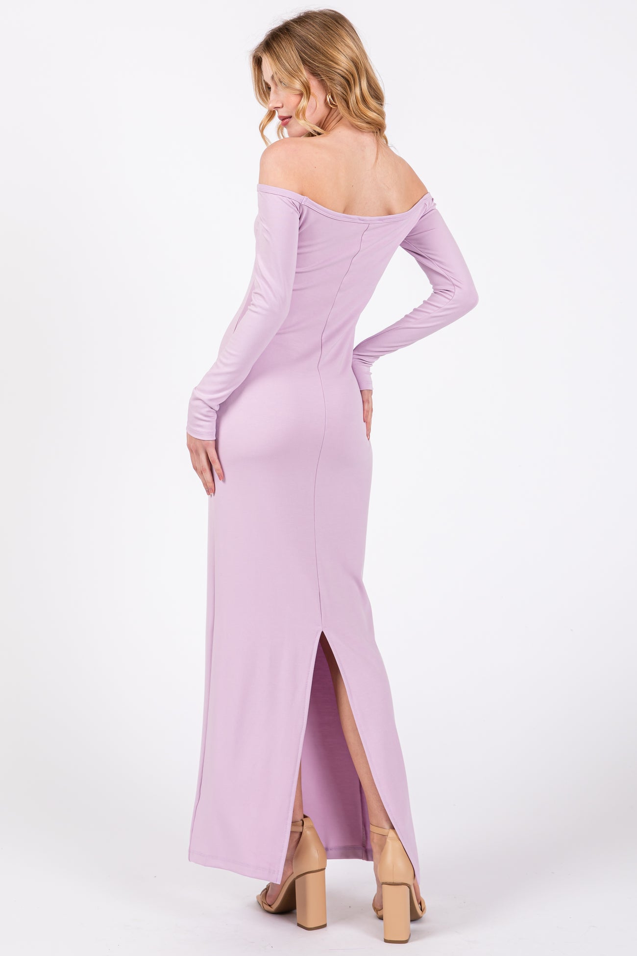 Lavender Off Shoulder Long Sleeve Maxi Dress