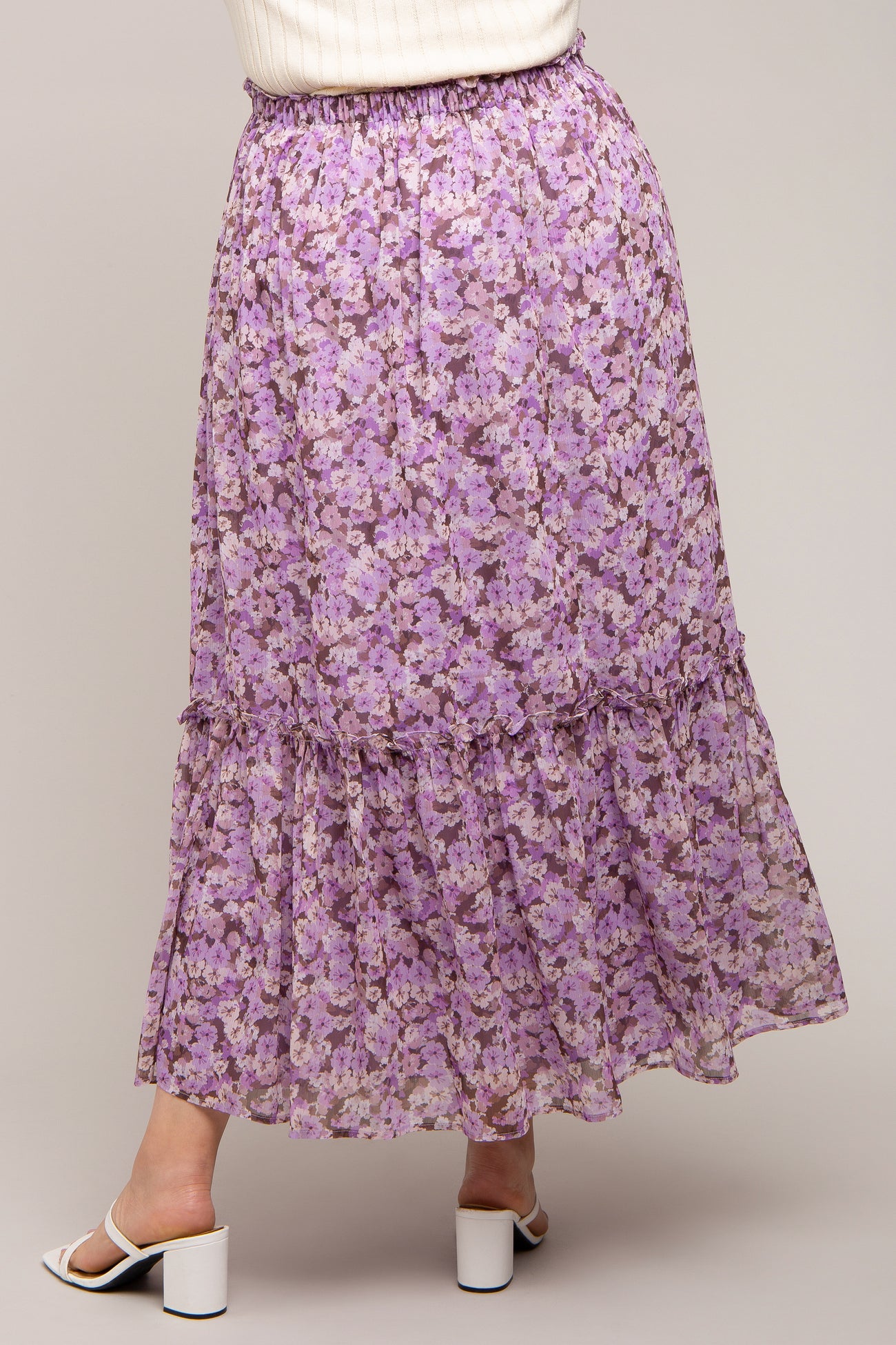 Lavender Smocked Waist Tiered Maternity Plus Maxi Skirt