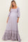 Lavender Solid 3/4 Sleeve Smocked Top Tiered Maternity Maxi Dress