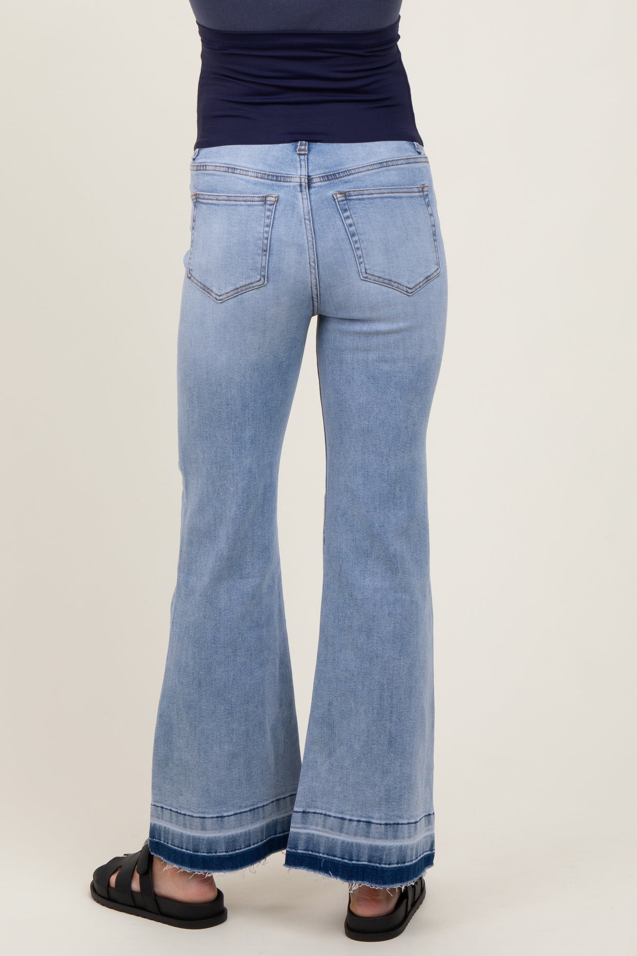 Light Blue Distressed Release Hem Flare Maternity Jeans