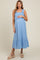Light Blue Eyelet Smocked Square Neck Maternity Midi Dress