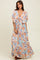 Light Blue Floral Flyway Sleeve V-Neck Tiered Maxi Dress