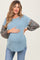 Light Blue Floral Ribbed Colorblock Maternity Long Sleeve