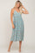 A floral sleeveless maxi dress featuring crisscross adjustable cami straps and a v-neckline. Partially double lined.