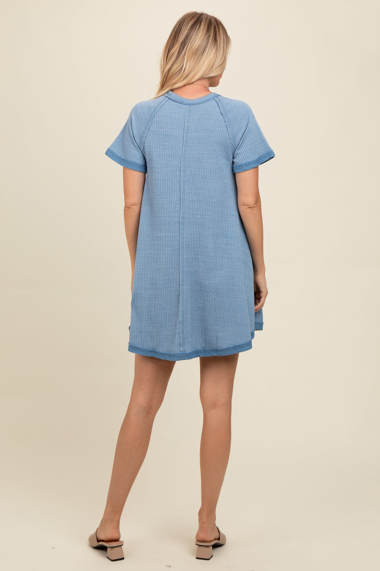 Light Blue Heather Ribbed Cut Seam Dress