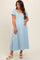 Light Blue Puff Sleeve Linen Maternity Midi Dress