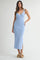 Light Blue Ribbed V-Neck Back Cutout Midi Dress