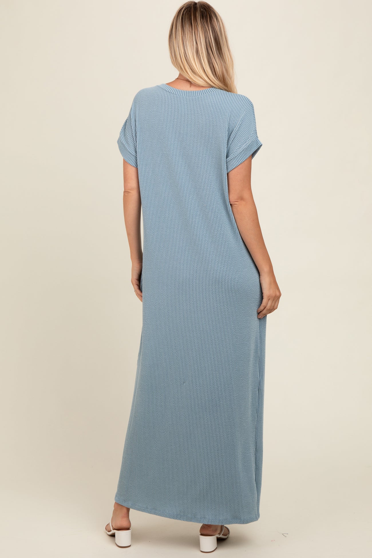 Light Blue Ribbed V-Neck Midi Dress