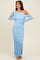 Light Blue Ruched Mesh One Shoulder Long Sleeve Maxi Dress