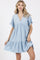 A solid dress featuring short ruffle sleeves, a ruffle hem and a ruffle v-neckline.