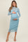 Light Blue Shimmer Mesh Long Sleeve Ruched Maternity Midi Dress