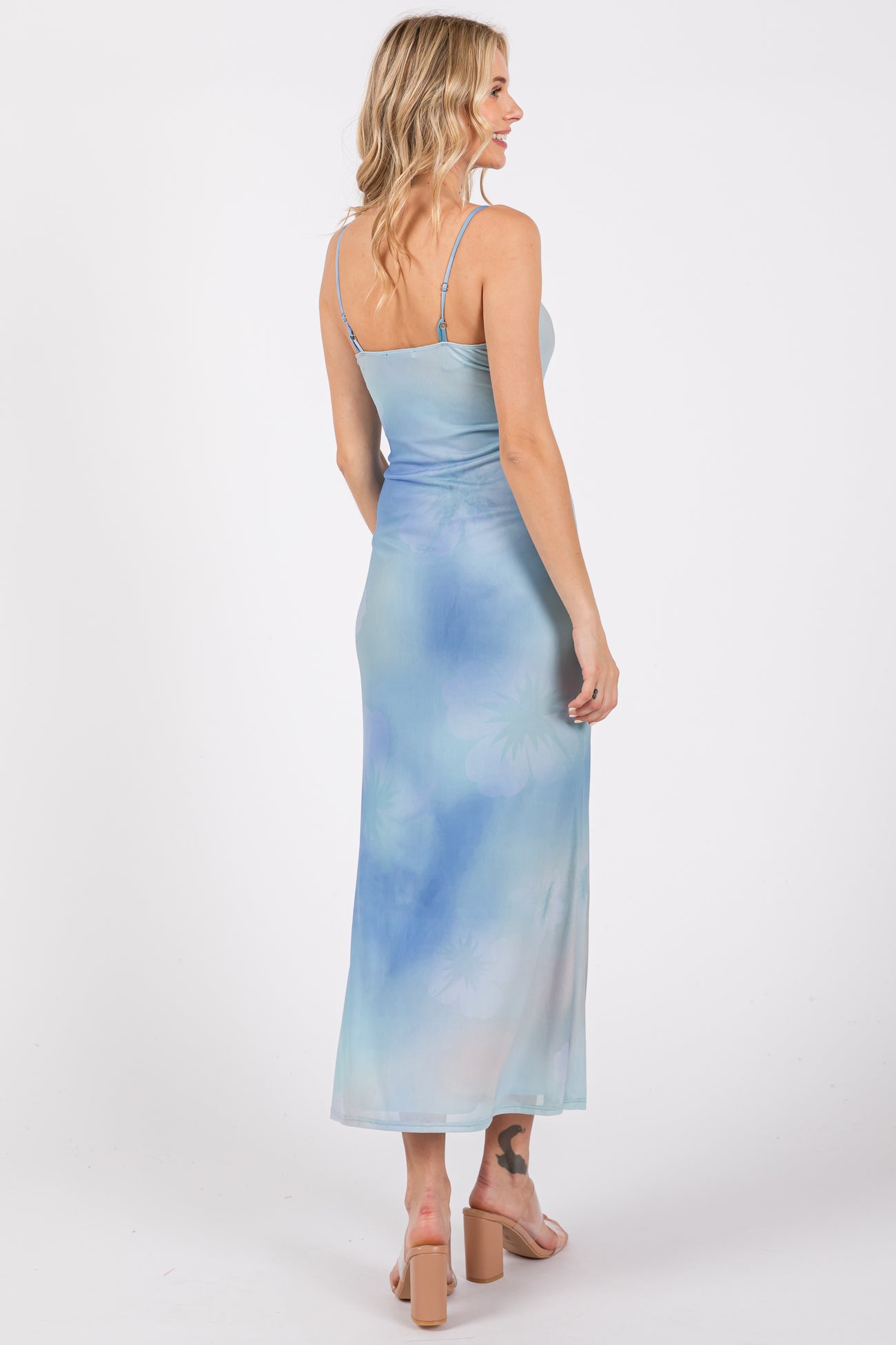 A tie dye maxi dress with a front cut out, and adjustable straps. Double lined.