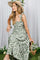 Light Olive Floral Tiered Shoulder Tie Midi Dress
