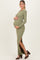 Light Olive Ribbed Long Sleeve Side Slit Maternity Maxi Dress