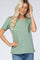 A solid hued knit top featuring short sleeves and a rounded neckline.