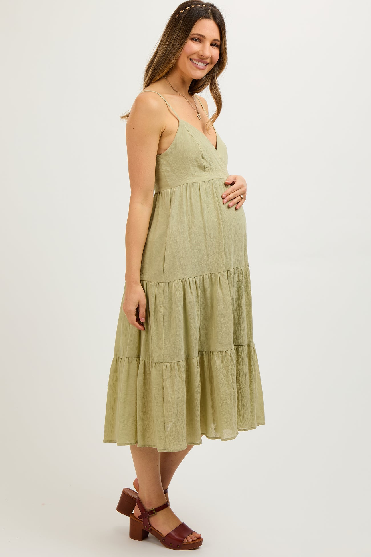 Light Olive Sleeveless Maternity Maxi Dress