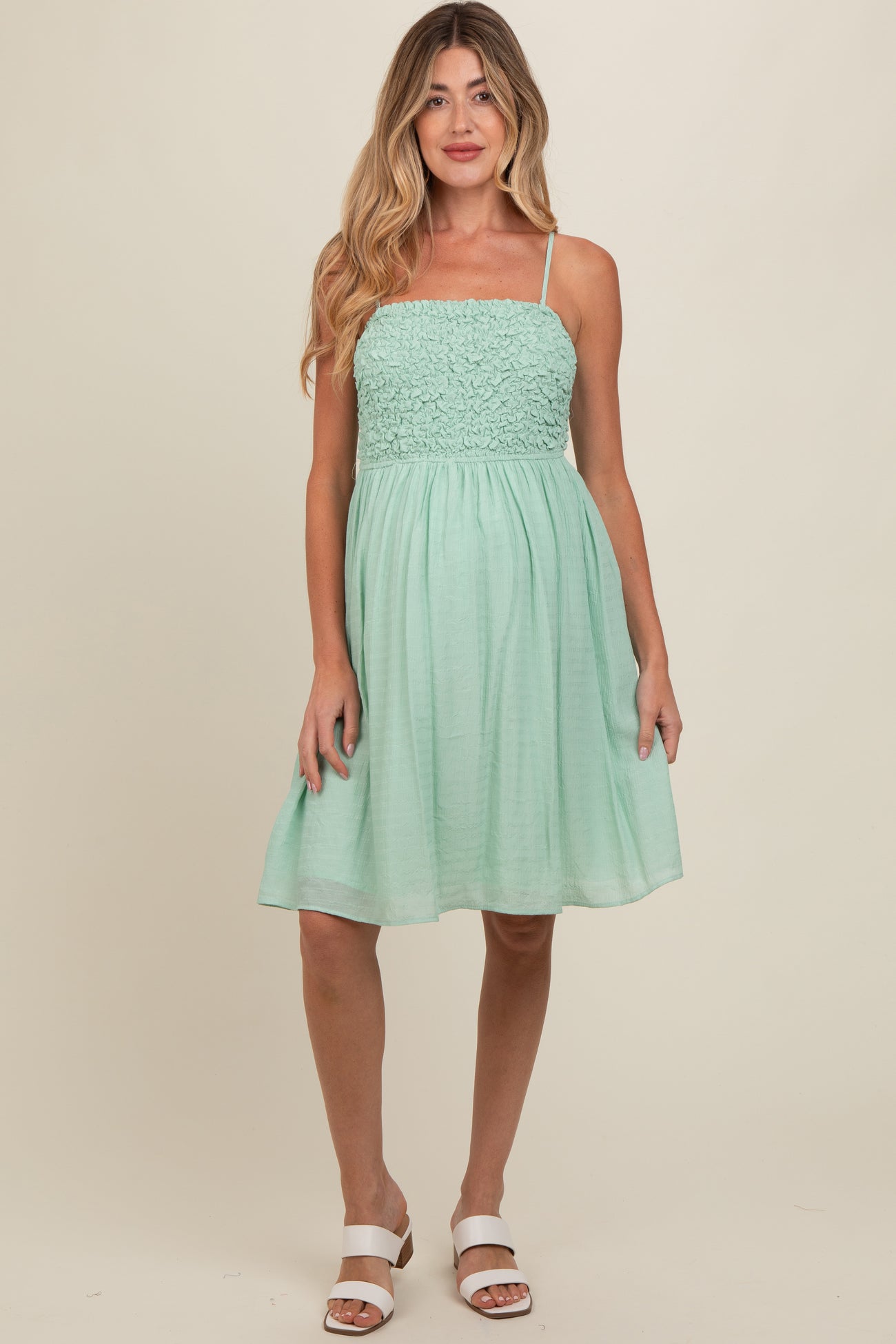 Light Olive Textured Smocked Maternity Dress