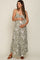 Light Olive Tropical Floral V-Neck Round Hem Maternity Midi Dress