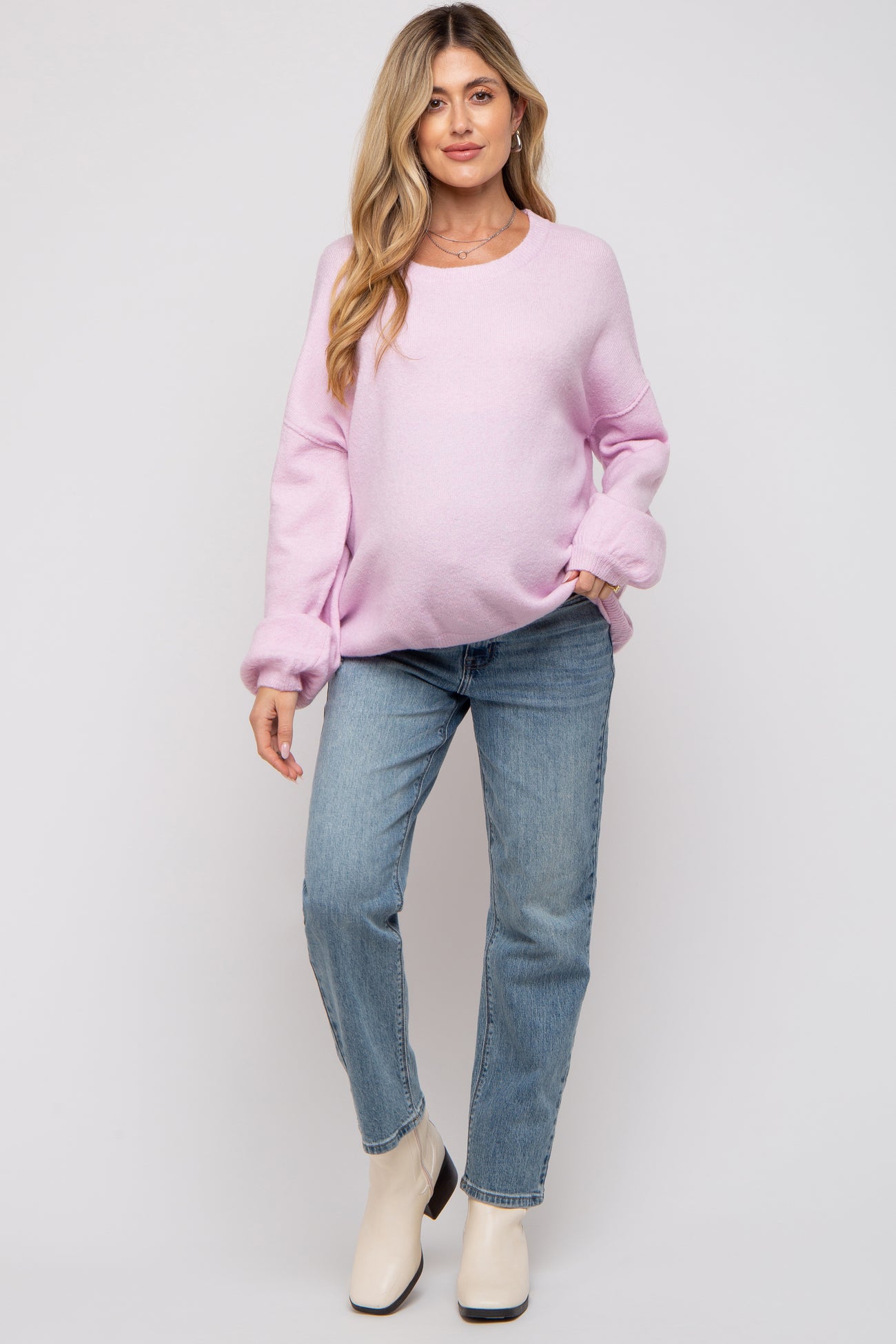 Light Pink Basic Drop Shoulder Maternity Sweater