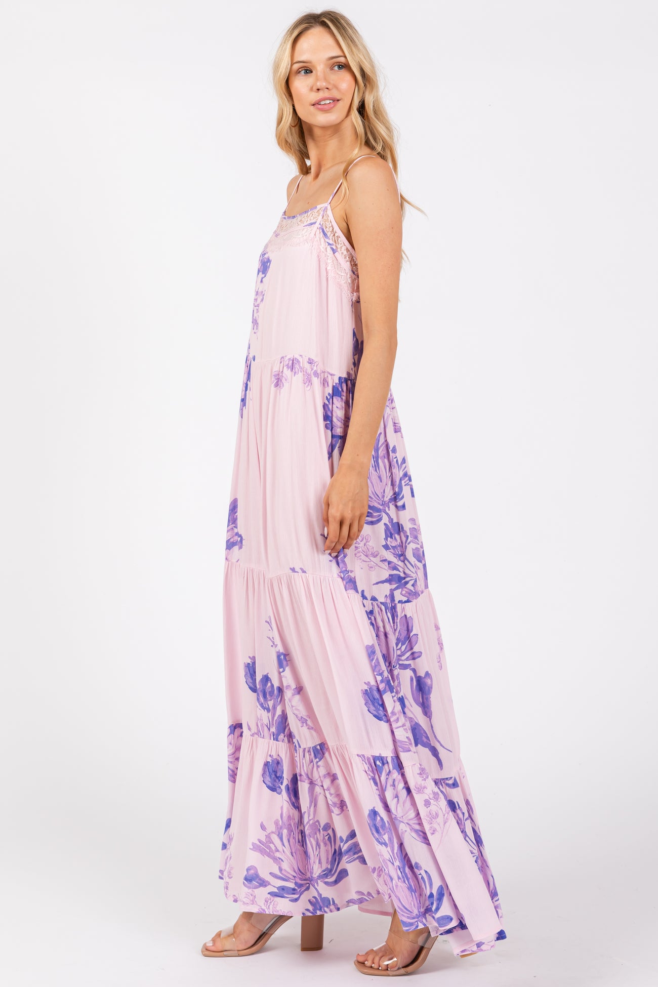 Light Pink Floral Lace Loose Fit Maxi Dress
