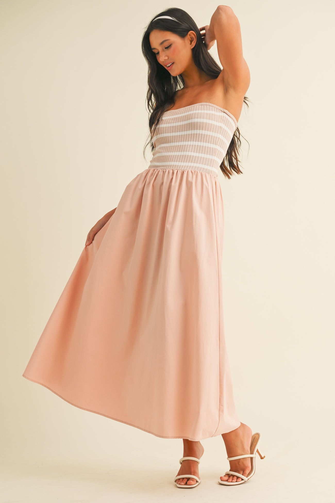 Mauve Striped Tube Knit Maternity Maxi Dress