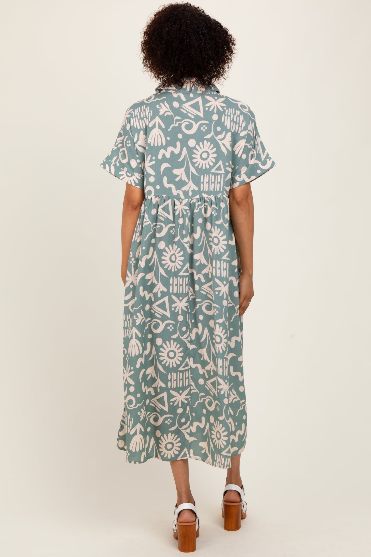 Mint Green Abstract Floral Shirt Midi Dress