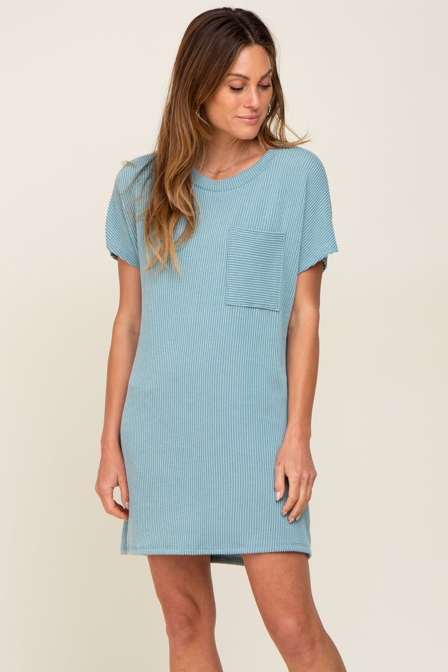 Mint Green Ribbed Front Pocket Dolman Short Sleeve Maternity Dress