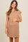 Mocha Front Pocket Line Textured Short Sleeve Maternity Dress