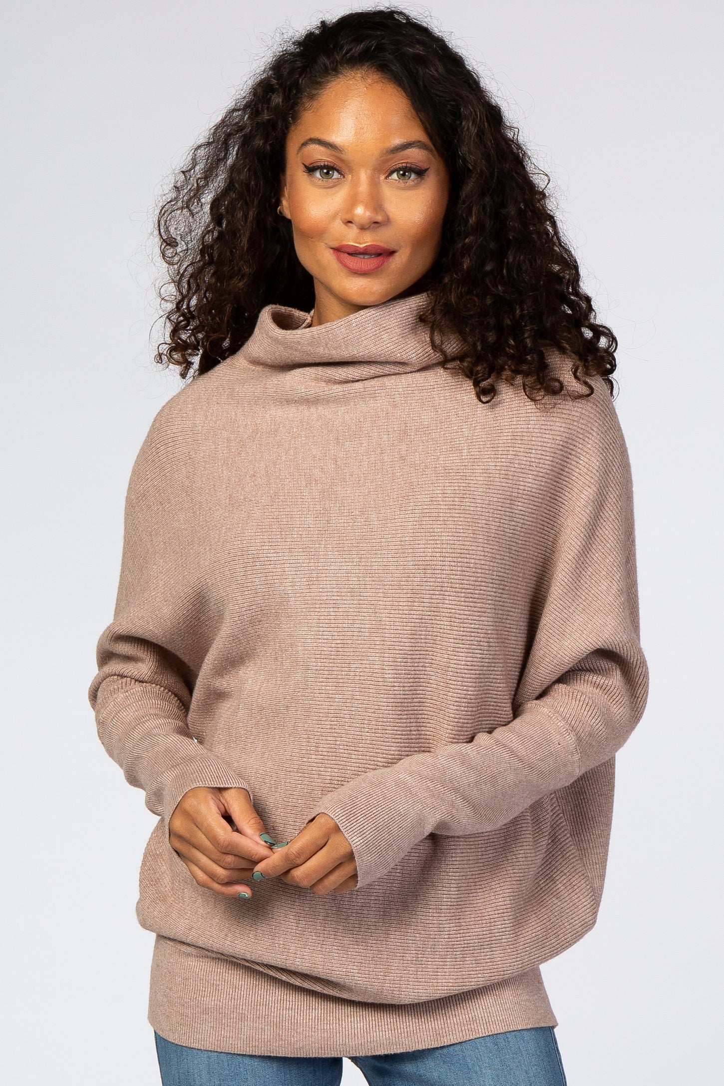Mocha Funnel Neck Dolman Sleeve Sweater