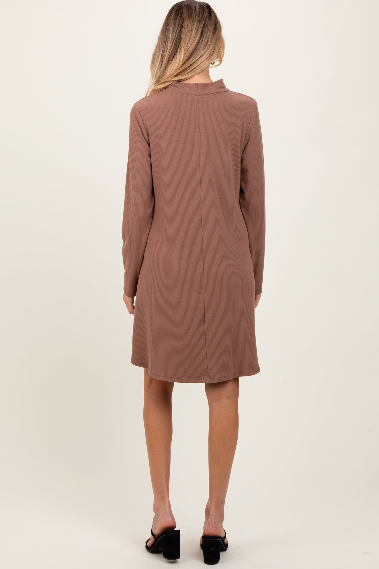 Mocha Ribbed Mock Neck Long Sleeve Basic Maternity Dress