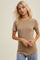Mocha Ribbed Short Sleeve Curved Hem Top