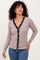 Mocha Striped Ribbed Long Sleeve Lace Detail Button Down Cardigan