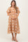 Embrace comfort and style with our Mocha Textured Maternity Midi Dress. Crafted from lightweight, breathable fabric with delicate white floral embroidery, this dress offers an elegant and airy feel perfect for any season. The midi length pairs beautifully with your bump, featuring a smocked bodice for gentle stretch and support. Puff sleeves and a charming tie-back detail add a romantic touch, while the flowy skirt allows for easy movement. Ideal for casual outings or special occasions, this dress keeps you looking effortlessly chic throughout your pregnancy. Machine washable for easy care. Available in multiple sizes to support your growing bump.