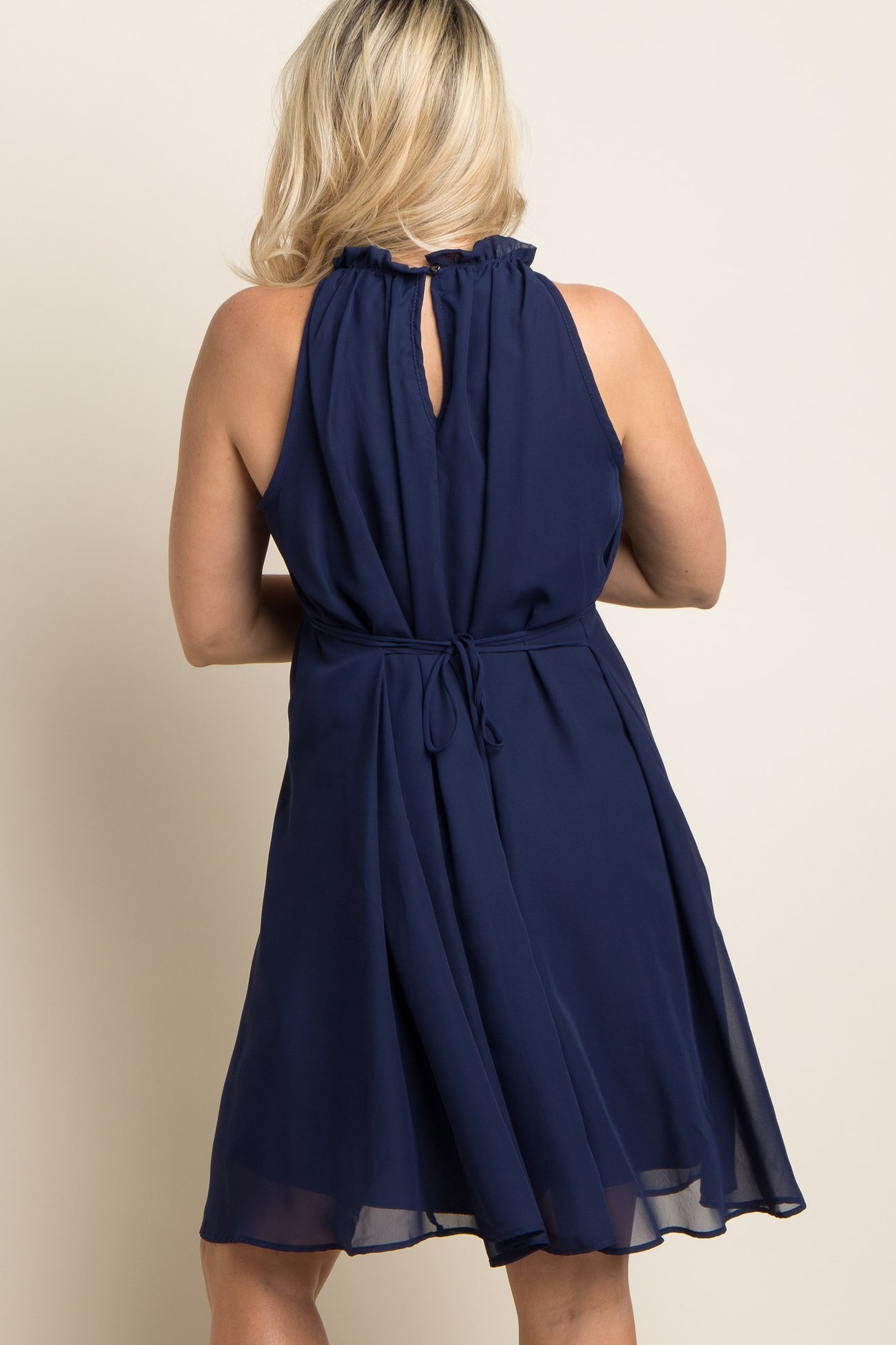 Elevate your maternity style with our Chiffon High Neck Maternity Dress. Crafted from lightweight, flowy chiffon, this dress features a flattering high neckline and a gently cinched waist to accentuate your growing bump. Soft lining ensures comfort for every stage of pregnancy, while the elegant hue makes it perfect for baby showers, photoshoots, or special occasions. The sleeveless design keeps you cool, and an easy back button closure adds convenience. Pair with your favorite accessories and step out feeling beautiful and confident throughout your pregnancy journey!