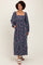 Navy Blue Floral Pleated Bust Long Sleeve Maxi Dress