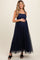 Navy Blue Square Neck Shoulder Tie Tulle Maternity Maxi Dress