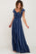 Navy Blue Striped Off Shoulder Front Tie Maxi Dress