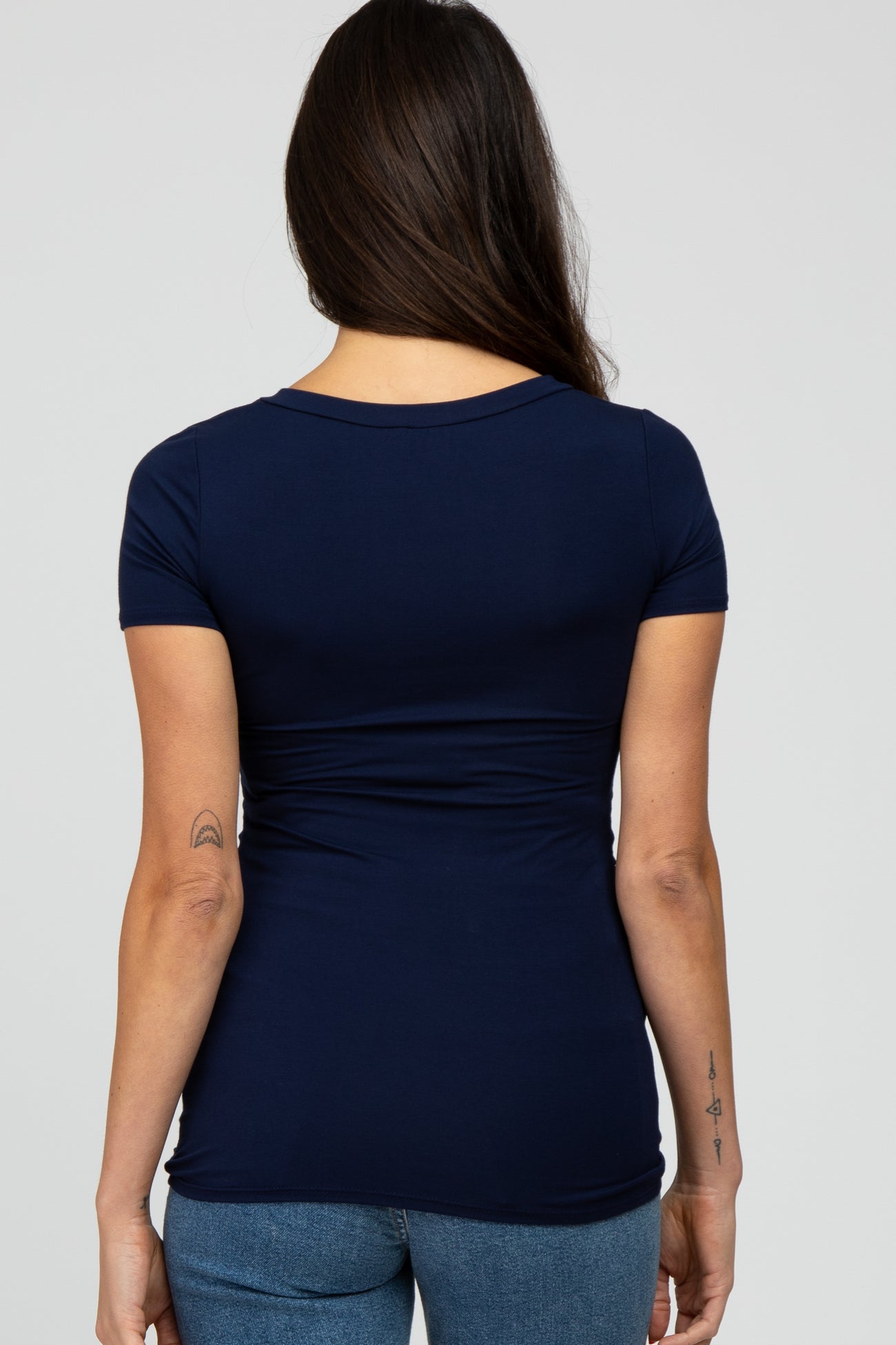 Navy Blue V-Neck Ruched Side Top