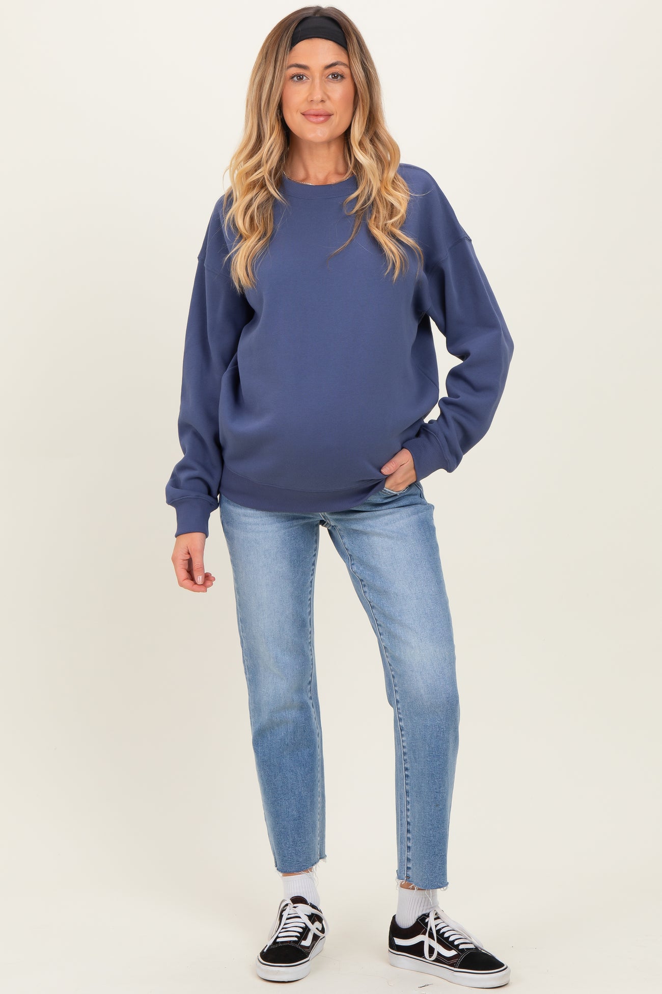 Navy Fleece Crew Neck Relaxed Fit Maternity Sweatshirt